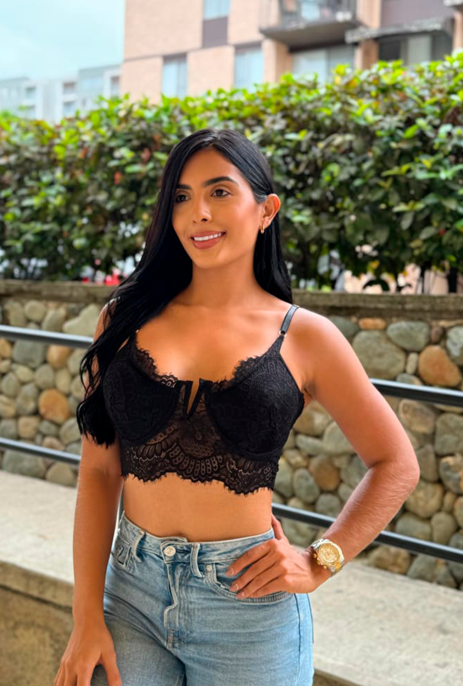El CROP TOP ENCAJE CON VARILLA EN V Y GANCHO GRADUABLE EN LAS TIRAS Y ATRÁS está diseñado para realzar tu estilo personal mientras ofrece la comodidad que necesitas. Este crop top es el equilibrio perfecto entre sofisticación y versatilidad, haciendo que se convierta en una pieza imprescindible en tu guardarropa.